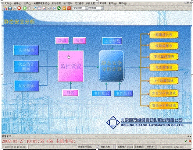 计算机通信、数据采集及监控(SCADA)、网络拓扑、状态估计、负荷预测、调度员潮流、电压无功优化控制、短路电流计算、静态安全分析、外部网络静态等值、网损计算、最优潮流、调度员培训仿真等。